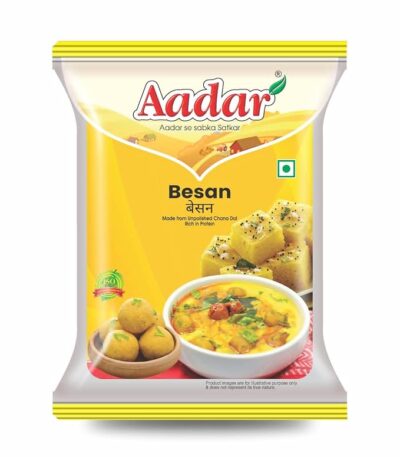 Aadar Spices Fresh Besan Flour, Chana Dal Atta for Making Dhokla, Chila, Pakora, Mysore Pak, Besan Ladoo, Pithla, No Added Preservatives, Rich in Protein & Fibre [Pack of 1, 500 Gms]