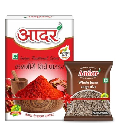 Aadar Spices Kashmiri Red Chilli Powder 100g + 10gm Sabut Jeera, Kashmiri Laal Mirch Powder for Natural Red Color and Taste in Cooking, No Added Preservatives